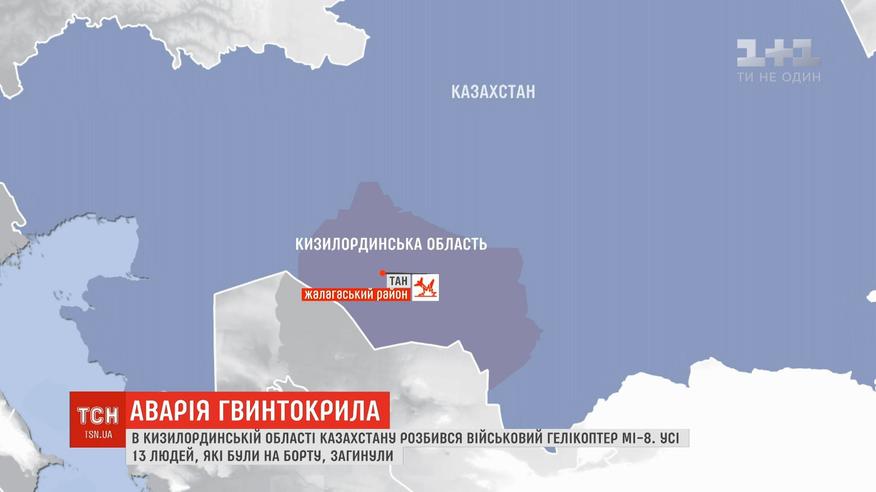 На облавку перебували 13 людей - усі загинули. Аварія сталася в Кизилординській області просто посеред поля. Гвинтокрил з військовими прямував з міста Ак-тау в Шикмент.