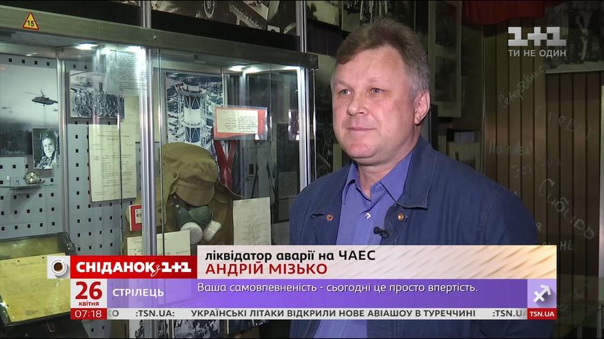 1986-го Андрій Мізько був лейтенантом, служив штурманом гелікоптера. І хоча з дня аварії минуло вже 32 роки, те завдання чоловік пам’ятає як сьогодні. Їх підняли по тривозі. Пункт призначення - Чорнобильська зона. З Андрієм ми зустрілися у столичному музеї Чорнобиля. Тут за склом його особисті речі, а вище військове фото – усміхненого і ще повного здоров’я.