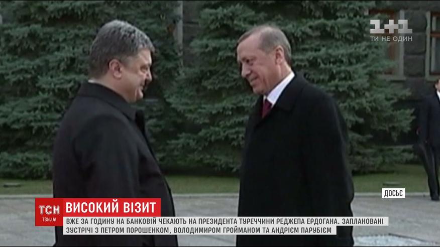 Президента Туреччини з офіційним візитом вже за годину чекають на Банковій і там має відбутися його зустріч тет-а-тет з українським президентом. Чекають Ердогана і спікер парламенту Парубій, і прем'єр-міністр Гройсман.
