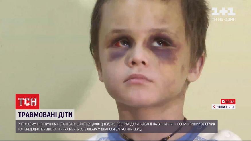 Тяжкий і украй тяжкий - так кажуть лікарі про стан дітей, травмованих в аварії у Вінницькій області. Восьмирічний Іванко з відкритою черепно-мозковою травмою - на апараті штучної вентиляції легень. Учора хлопчик переніс клінічну смерть, але лікарям вдалась запустити серце. Його п'ятирічна сестричка з переломами і ушкодженими внутрішніми органами теж у реанімації. Дівчинка вже опритомніла і реагує на рухи, але критичний період ще не минув. Лікування дітей оплачує родина винуватця ДТП.
