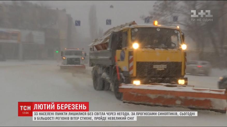Внаслідок негоди 33 населених пункти по Україні досі залишаються без світла
