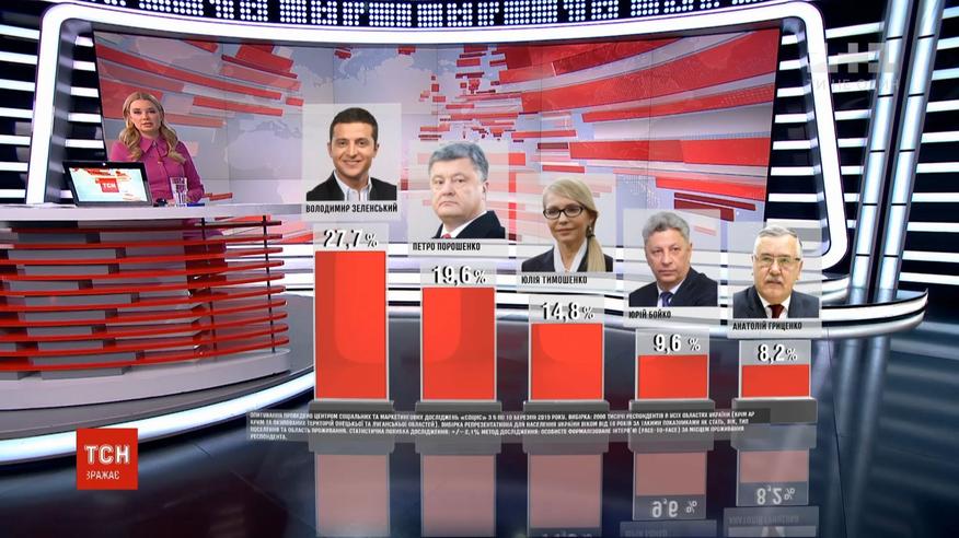Збільшив відрив від Юлії Тимошенко і чинний президент. Про це свідчить опитування центру "Социс", яке належить політтехнологу Петра Порошенка - Ігорю Гриніву. Отже, за Володимира Зеленського свої голоси готові віддати 27,7% українців. За чинного президента – 19,6% виборців. За Тимошенко - 14,8%.