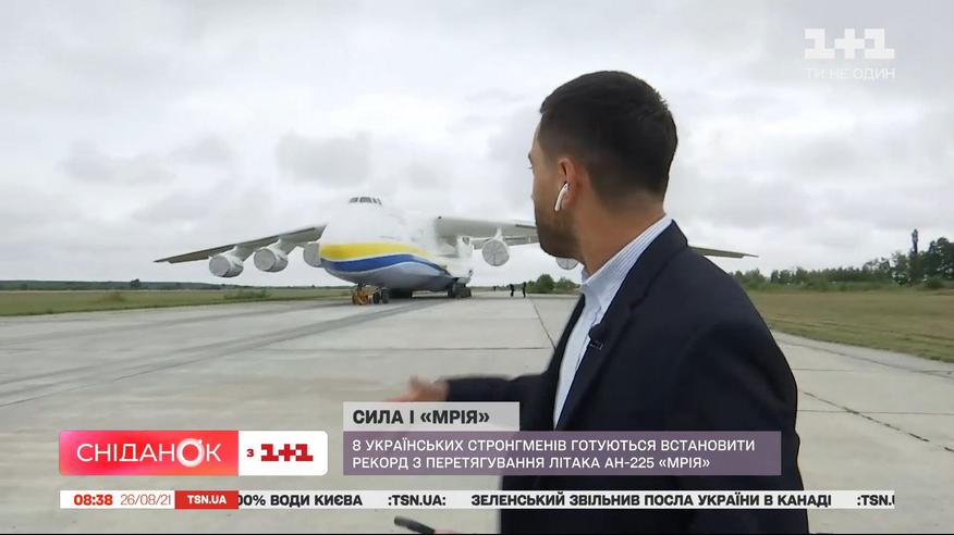 Рекорд України сьогодні планують встановити восьмеро найсильніших стронгменів. Богатирі тягтимуть найбільший у світі транспортний літак "Мрія", політ якого у День Незалежності всі захоплено спостерігали над Києвом.