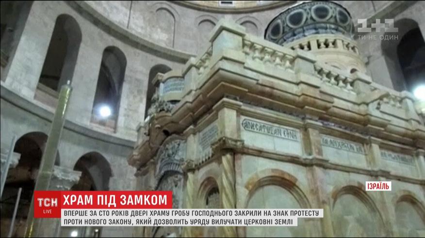 Вперше за сто років Храм Гробу Господнього - головна християнська святиня Єрусалима - закрив свої двері на знак протесту. Все через цілком земні суперечки, а саме зміни в податковому кодексі та новий закон, який може дозволити уряду вилучати церковні землі. Юридично - церковна нерухомість на святій землі прирівняна до комерційної. І законодавці хочуть обмежити можливість церкві перепродавати свої землі, аби не постраждали прості миряни. Утім урядовці заспокоюють, що причин хвилюватися в церковників немає, але розгляд законопроекту про всяк випадок відклали.