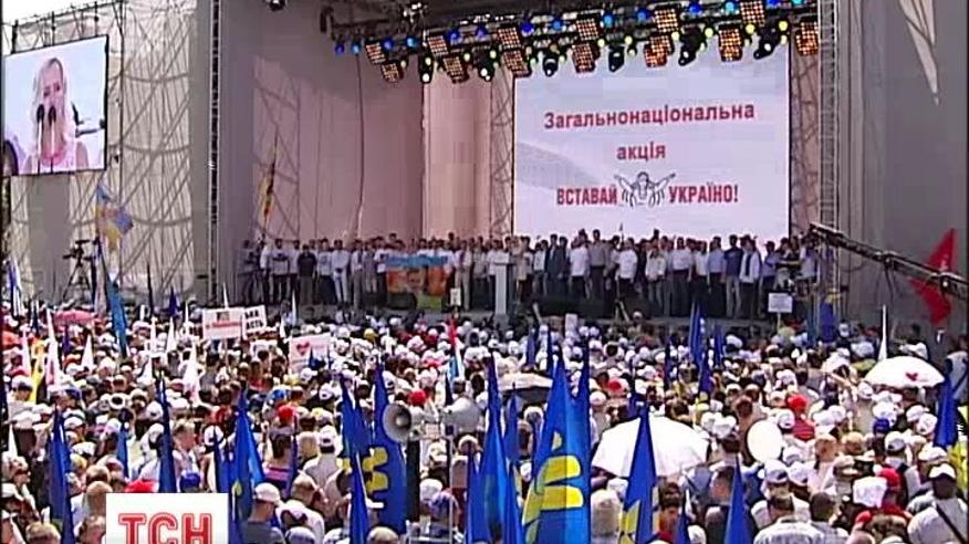Акцію сьогодні влаштувала опозиція. Люди пройшлися ходою від Європейської до Софіївської площі. На ній і відбувся мітинг. У його розпал неподалік з'явився БТР із невідомим.