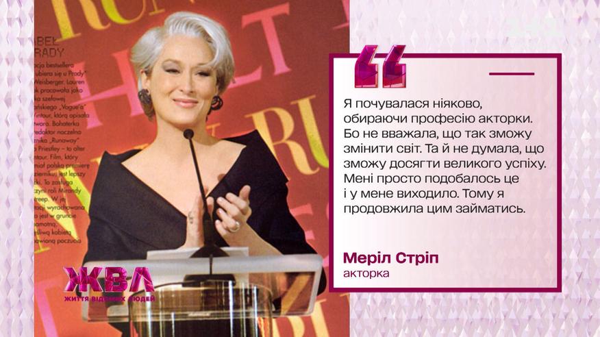 Неймовірна жінка і чи не найкраща акторка сучасності — Меріл Стріп. Меріл пережила гірку втрату коханогоі зібрала всі можливі кінонагороди, виховавши чотирьох дітей на фермі. Як Меріл Стріп встигла всюди? Унікальну історію зірки дивіться у ЖВЛ.