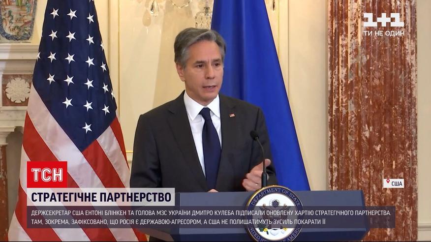 Сполучені Штати не виключають нового повномасштабного вторгнення Росії на українську територію. Про це заявив Державний секретар Ентоні Блінкен після підписання разом із українським колегою Дмитром Кулебою оновленої Хартії стратегічного партнерства. Там, зокрема, зафіксовано, що Росія є державою-агресором, а США не полишатимуть зусиль покарати її.