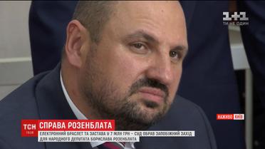 Суд обрав запобіжний захід для нардепа. Сума застави - сім мільйонів гривень. Крім того, депутат має носити електронний браслет, а також здати закордонні паспорти. Ці рішення суд ухвалив на вимогу НАБУ та антикорупційної прокуратури, які звинувачують Розенблата у тому, що він за хабар погодився сприяти іноземній фірмі у видобутку бурштину.