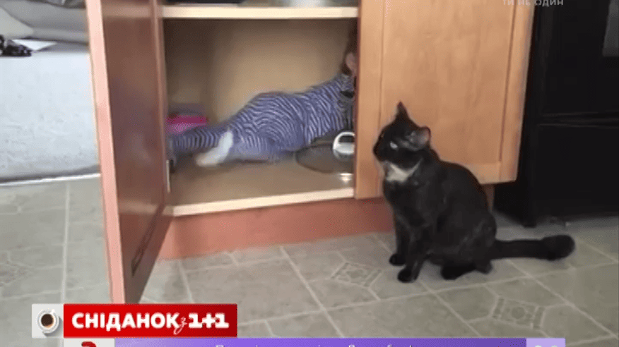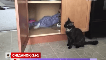 Коли в родині з’являється дитина, часто, нашим пухнастикам стає непереливки. Мабуть і цей котик втомився від постійних смикань за вуха та хвоста. Тож вирішив покарати свого кривдника. Хитрий мурчик дочекався, поки малий залізе у шафку. Застрибнув на дверцята і майстерно їх зачинив.