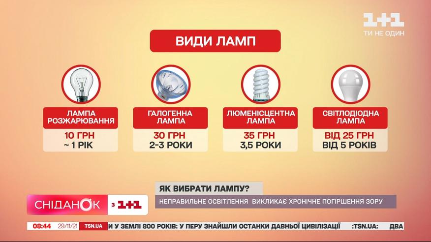 Сьогодні світловий день в Україні триває 8 годин 24 хвилини. У порівнянні з літом він скоротиться на 8 годин. А чим раніше темніє, тим довше ми використовуємо штучне освітлення. Виявляється, така дрібниця, як неправильно підібрана лампа – може викликати хронічні погіршення зору і не тільки. Як же правильно вибрати лампочку, аби не нашкодити собі? Головні нюанси – далі в сюжеті.