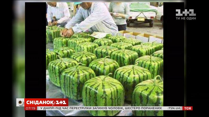 За кордоном вже кілька років поспіль вирощують кавуни різної форми: квадратні, трикутні і навіть з обличчям! Вирощують їх у контейнерах з органічного скла.