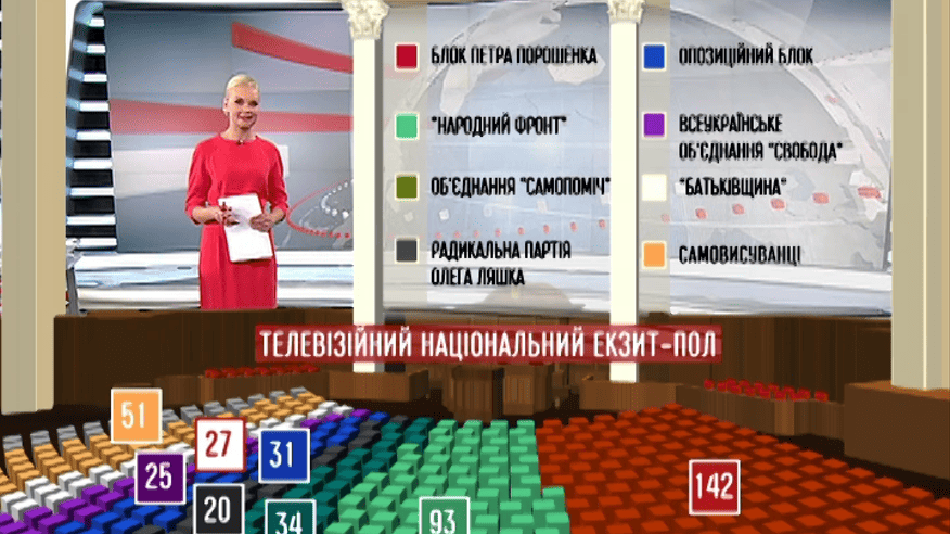 Ми відтворили парламентську залу, базуючись на дані екзит-полу компанії ТНС. З дуже високою ймовірністю можна говорити тільки про половину складу Верховної Ради, дані по мажоритарниках є лише приблизні.