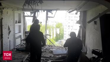 Вночі, 8 травня, уламки ворожого безпілотника влучили у квартиру на 11 поверсі, що у Святошинському районі Києва. В результаті пошкоджено вікна, стіни, утворилася дірка на вулицю. Відео: Ігор Сєров, ТСН.ua.