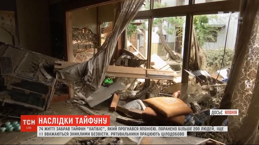 До 74-х зросла кількість жертв потужного тайфуну "Хаґібіс", що пронісся Японією. Поранено понад 200 людей, ще 11 - вважаються зниклими безвісти. 13 тисяч будинків залишились без світла, у 130 тисячах осель відсутнє водопостачання. У кількох префектурах зачинені школи та крамниці. Через розлив річок та сильні паводки перекрито десятки автошляхів.