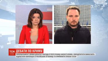 Напередодні кримська тема звучала у Європарламенті. Але чи знають у Брюсселі про сьогоднішні події на окупованому півострові і яка може бути реакція - включення з Брюсселя. Європарламент провів дебати з нагоди п'ятої річниці анексії Криму. Євродепутати вимагають відпустити українців із російських в'язниць та припинити утиски татар.