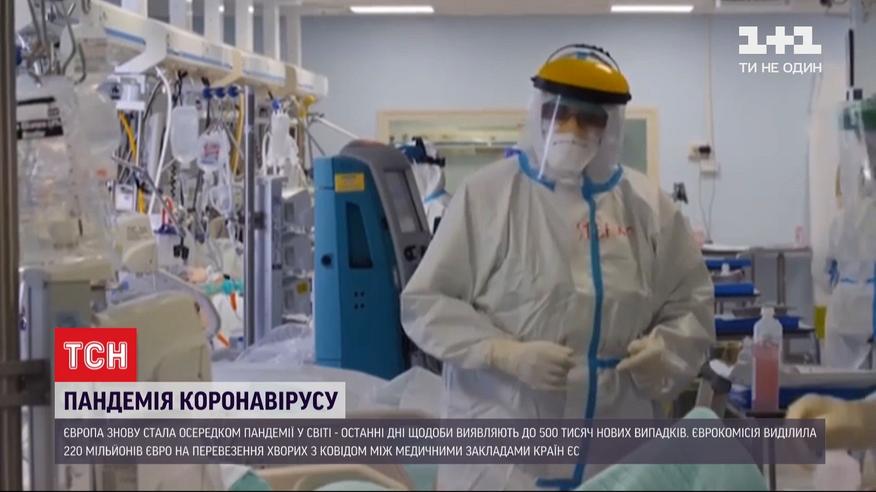 Єврокомісія надала 220 мільйонів євро на фінансування перевезення хворих з коронавірусом між медичними закладами країн ЄС. Таке рішення ухвалили, щоб за необхідності розвантажувати лікарні в регіонах з найбільшою кількістю тяжких хворих. У ЄС останні кілька днів поспіль щодоби кількість нових випадків сягає півмільйона. Європа знову стала світовим осередком пандемії. Найбільше нових заражень у Франції – від опівночі у країні почав діяти новий локдаун, який обмежує переміщення між регіонами. Більшість країн ЄС, попри стрибок заражень, прагнуть уникнути жорсткого карантину і поки що обмежуються локальними заборонами. Більше про коронавірус