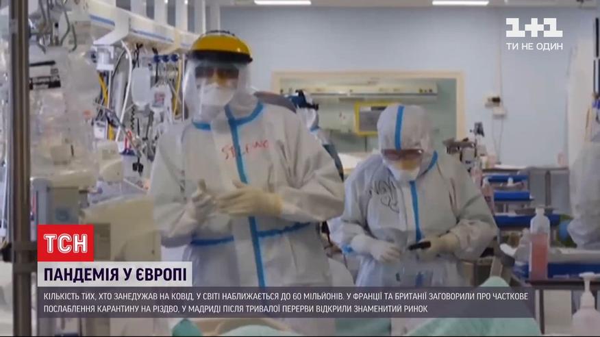 Європа може зіткнутися з третьою хвилею коронавірусу вже на початку наступного року - про це застеріг спецпосланець ВООЗ із боротьби з пандемією. Кількість тих, хто занедужав на COVID-19, у світі наближається до 60 мільйонів. Утім, одразу у кількох країнах заговорили про часткове ослаблення обмежень. Зокрема, влада Франції, де кількість інфікувань падає, розглядає послаблення карантину у кілька фаз - на початку грудня, на Різдво та на початку року. Тоді, як Британія на Різдво може дозволити родичам і друзям, що живуть за трьома різними адресами, зустрітися і разом провести свята. Більше про коронавірус
