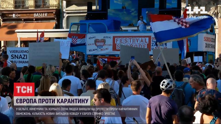Протести проти карантинних обмежень прокотилися Європою: у Бельгії, Німеччині та Хорватії сотні людей вимагали скасувати обов’язкове носіння масок та відновити повноцінну роботу розважальних та культурних закладів, які в умовах карантину опинились на межі виживання. Брюссельський протест зупинила поліція – двох людей затримали. У Німеччині найбільша антикарантинна акція зібралась у Вісбадені – там протестувальники вийшли до міської мерії з вимогою поважати їхні й права свободи. Протестувальники у Загребі назвали свою акцію фестивалем свободи- туди з'їхались люди з усієї Хорватії. Водночас у Європі стрімко зростає кількість нових випадків коронавірусу, найвищі за останні місяці показники фіксують практично повсюди – то ж у більшості країн відновлюють карантинні обмеження.