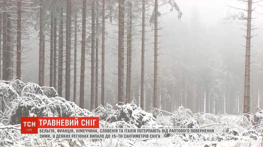 Бельгія, Франція, Німеччина, Словенія та частина Італії потерпають від навали снігу. Усю весняну зелень накрило подекуди 15-сантиметровим білосніжним шаром. Температура в деяких регіонах впала до двох градусів тепла. Багато дерев не витримало такої раптової завірюхи. Тож комунальникам додалося роботи – розчищати дороги від зламаного гілля.