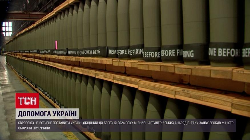 Євросоюз не встигне поставити Україні обіцяний до березня 2024-го мільйон артилерійських снарядів. Таку заяву зробив міністр оборони Німеччини. За словами Бориса Пісторіуса, сьогодні було б правильно поставити питання, чи була мета у мільйон снарядів, яку собі поставив Євросоюз, колись реалістичною. Раніше глава українського МЗС пояснив, що Євросоюз не встигне виконати власний план через стан оборонного виробництва й бюрократичні перепони. Деталі в ТСН.