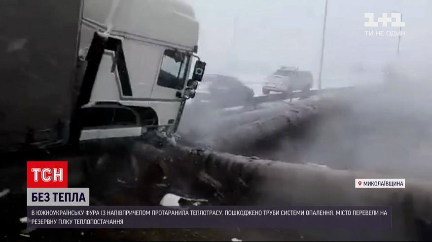 Южноукраїнськ годину був без опалення через фуру, яку занесло на відкриту теплотрасу