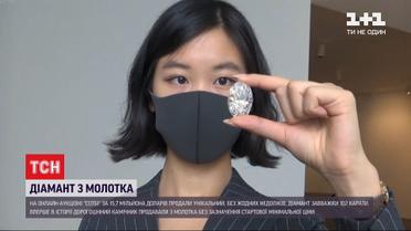 Майже 16 мільйонів доларів за діамант. З аукціону Сотбі у Гонконгу продали унікальний камінь завважки 102 карати. Ювеліри кажуть, цей діамант бездоганний. Він лише один із восьми подібних камінчиків, які продавали з молотка. І був частиною велетенського алмазу вагою 271 карат, видобутого у Канаді 2 роки тому. Через пандемію аукціон проводили онлайн. Цього разу вперше в історії діамант з молотка продавали без зазначення стартової мінімальної ціни. А тому, кажуть експерти, його віддали задешево. Ім`я власника не розголошують.