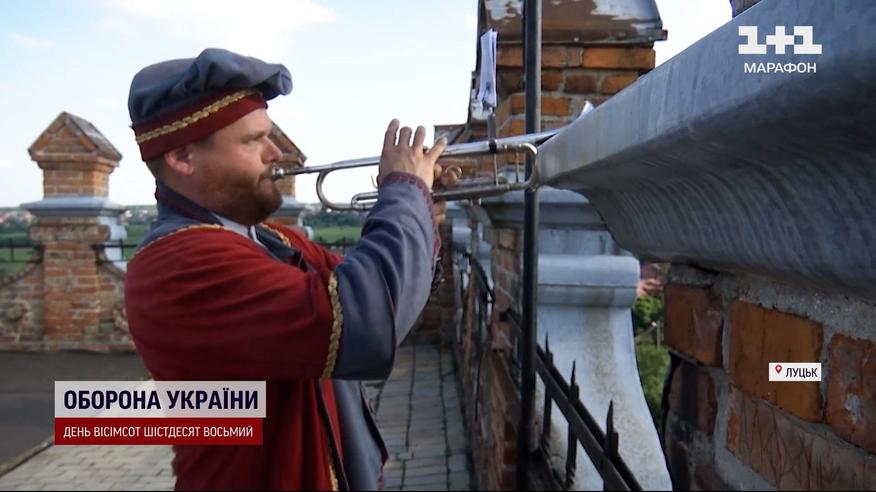 Остання колискова. З вежі Луцького замку лунала колисанка в пам'ять дітей, які загинули у столиці 8 липня. Зіграв її місцевий кликун Андрій. Цей музикант щодня у святковому вбранні сурмить гімн України. Колискову «Котику сіренький» музикант виконав тут уперше. Деталі – в ТСН.