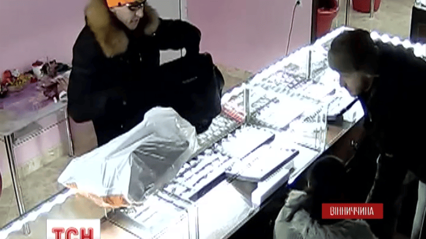 Двоє чоловіків увірвалися у магазин, молотком розбили вітрини і забрали усі коштовності. Продавчинь змусили мовчати, погрожуючи ножем та електрошокером. Обличчя нападників зафіксувала камера спостереження.