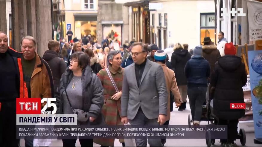 Коронавірусний рекорд - за добу у світі виявили три з половиною мільйони нових випадків COVID-19. Про найбільшу з початку пандемії кількість інфікувань повідомила і влада Німеччини. Йдеться про понад 140 тисяч хворих. Рекордні показники інфікування у Німеччині фіксують третій день поспіль, пов'язують їх із поширенням штаму Омікрон. Загалом же в Європі це четверта країна - на рівні з Британією, Францією та Італією, де кількість нових випадків COVID-19 перевищує сто тисяч на день. Тим часом, нижня палата парламенту Австрії проголосувала за закон про обов'язкову загальну вакцинацію від коронавірусу, запровадити її хочуть з лютого.