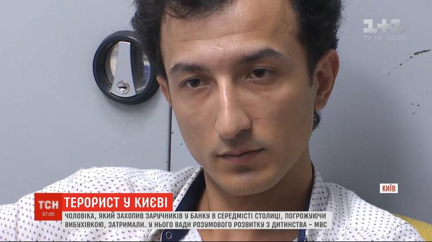 Суд і роки за гратами чекають на київського нападника, за словами заступника міністра внутрішніх справ. Напередодні у Києві чоловік взяв заручників і погрожував підірвати банк навпроти Оперного театру. Майже всіх співробітників евакуювали. Сам на сам із мінером залишилася лише одна з працівниць. Аби озвучити свої вимоги, чоловік покликав до себе журналістів. Просто під час інтерв'ю його затримали спецпризначенці.