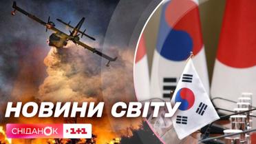 Прем’єр Японії вперше з візитом у Південній Кореї за 12 років. Російський винищувач намагався перехопити польський літак. А також сезон лісових пожеж у Канаді. Подробиці світових подій далі в нашому дайджесті.