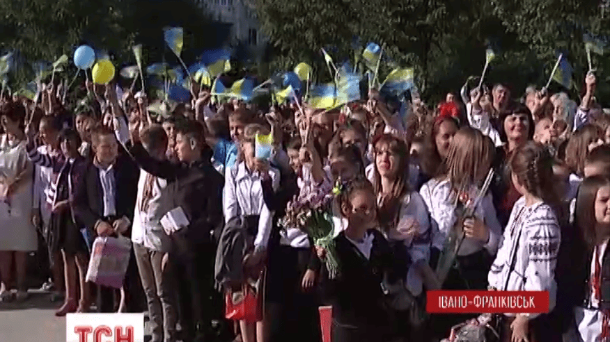 Замість квітів в багатьох школах учні принесли вчителям синьо-жовті прапорці та державну символіку. Зекономлені на квітах гроші батьки вирішили передати на потреби військових, які воюють на сході.