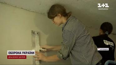 Замуровують танкові влучання у стінах! Студенти допомагають людям відбудовувати оселі!