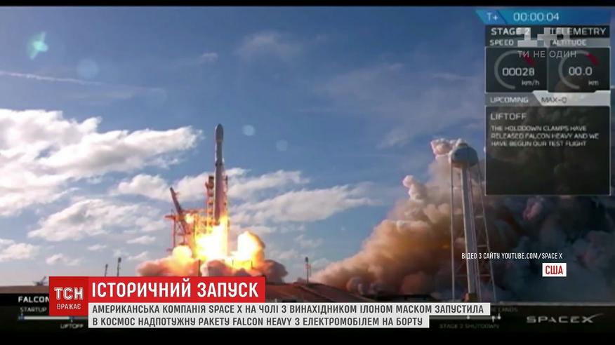 Ще ніхто і ніколи не виносив на орбіту такий тяжкий вантаж. Ракета стартувала з космодрому NASA у Флориді із особистим електромобілем Маска на Облавку. Ця "Тесла" - за планом - має дістатись орбіти Марса. За її кермом - манекен у скафандрі, а у салоні лунає пісня Девіда Боуї "Космічна дивина".