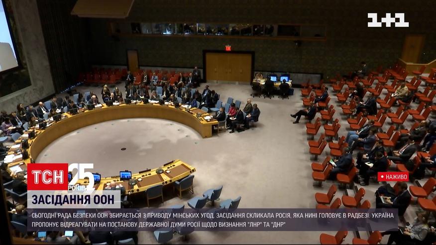 Рада безпеки ООН збереться сьогодні, 17 лютого, на засідання з приводу Мінських угод. Його скликала Росія, що нині головує у Радбезі. Москва традиційно збирається звинуватити Київ у саботажі виконання домовленостей. Українське МЗС заперечило - Мінський процес підриває саме Росія. Днями Державна Дума проголосувала за те, щоб визнати самопроголошені республіки незалежними. І це прямо суперечить Мінським угодам.