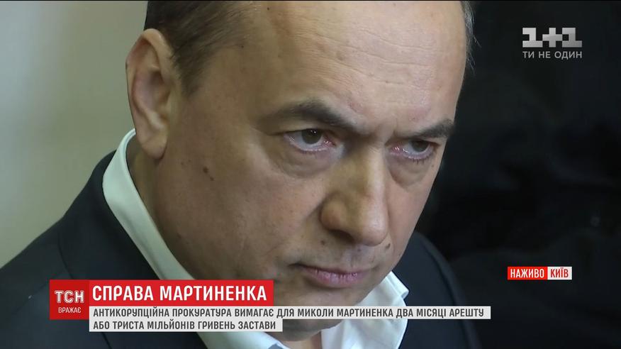Запобіжний захід для Миколи Мартиненка сьогодні має обрати Солом'янський суд Києва. Екс-нардепу закидають причетність до оборудок із урановою рудою, які завдали державі збитків на 17 мільйонів доларів. Відомо, що слідчі просять для Мартиненка або арешт, або 300 мільйонів гривень застави.