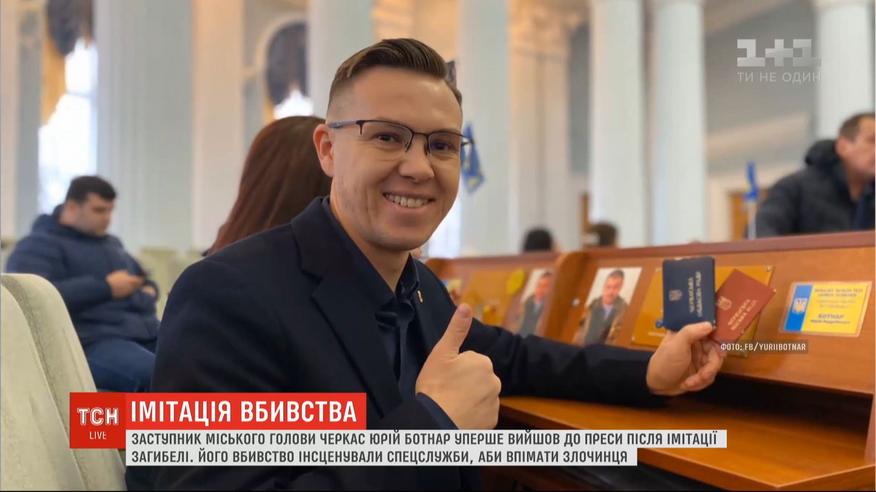 Живий та здоровий, і вперше вийшов до преси після інциденту. Заступник голови Черкас Юрій Ботнар, убивство якого інсценували спецслужби аби впіймати злочинця, почувається добре. Його, за версією Державного бюро розслідувань, замовив місцевий депутат, через розподіл сфер впливу. Замовник нині затриманий. Хто ще може бути причетним до злочину та інші подробиці замовного вбивства – у сюжеті.