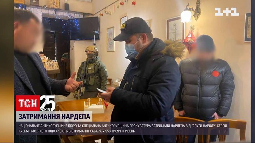 Правоохоронці затримали нардепа від "Слуги народу" Сергія Кузьміних, якого підозрюють в отриманні хабара у 558 тисяч гривень. За даними Національного антикорупційного бюро нардепу, який перебував у розшуку за переховування від правоохоронців, вручили клопотання про обрання запобіжного заходу. За даними слідства, депутат отримав півмільйонний хабар за сприяння в укладенні контрактів між приватними компаніями і лікарнею у Житомирській області.
