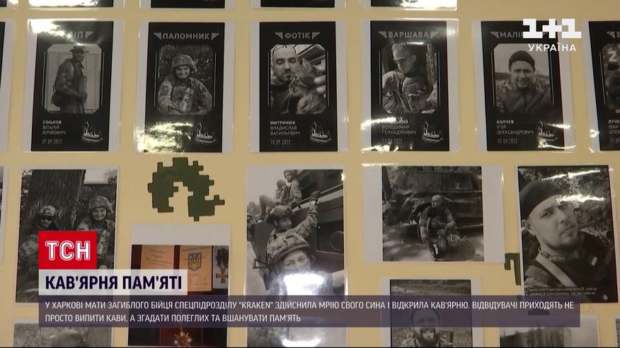 Кав’ярня пам’яті відкрилась у Харкові. Мати загиблого бійця спецпідрозділу "Кракен" здійснила мрію свого сина. Заклад назвала його позивним - Паломник. У кафе оздоба з пікселем, маскувальними сітками, а також десятки світлин загиблих побратимів сина. Відвідувачі приходять не просто випити кави, а й згадати полеглих та вшанувати їхню пам’ять.