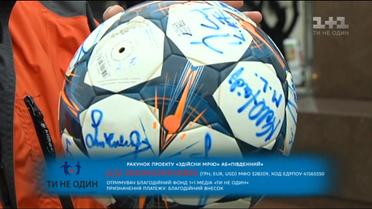 Переможець конкурсу від програми "ПроФутбол" Юрій представляє лот - м'яч фіналу Ліги чемпіонів з автографами світових зірок. Стартова ціна – 2000 гривень.