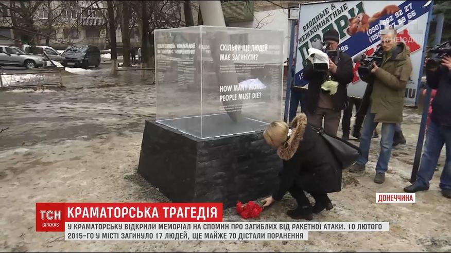 У лютому 2015-го, вже український Краматорськ, просто серед білого дня здригнувся від потужних розривів. З інтервалом у 30 хвилин у місті сталося дві серії вибухів. Загинули сімнадцятеро людей: і військових, і цивільних. Щоправда, місця на меморіалі чомусь знайшлося не всім. Помилку взялися виправляти волонтери просто під час урочистостей.