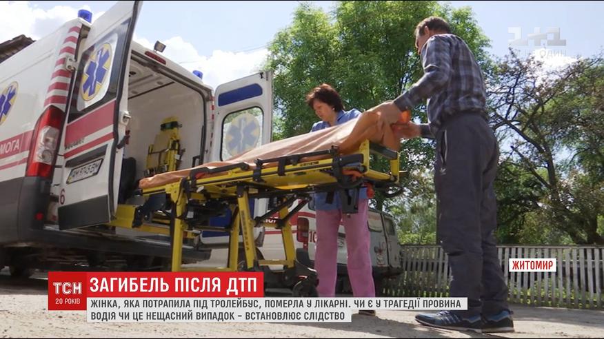 16 червня в обідню пору літня житомирянка бігла до тролейбуса, який під’їжджав до зупинки, перечепилася і впала під заднє колесо. Тролейбус переїхав їй обидві ноги і лиш потім зупинився. Медикам довелося ампутувати ліву ногу вище коліна, на праву - накласти гіпс. 77-річна пацієнтка втратила багато крові, була у тяжкому стані. Померла напередодні, не приходячи до тями.