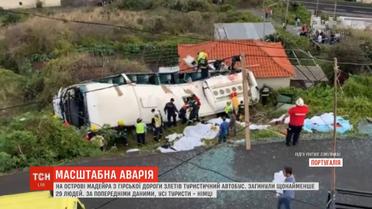В Португалії оголосили 3-денну жалобу за загиблими в трагічній автотрощі. Місцеві чиновники кажуть - кількість жертв не остаточна, бо нині в лікарнях із травмами різного ступеня перебувають 27 осіб. Водій туристичного автобуса не впорався з кермуванням на гірській дорозі. Транспорт перекинувся та впав на дах будинку, розташованого на схилі.