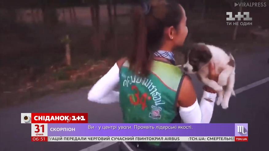 Жінка-марафонець на дистанції підібрала цуценя і разом з ним добігла до фінішу