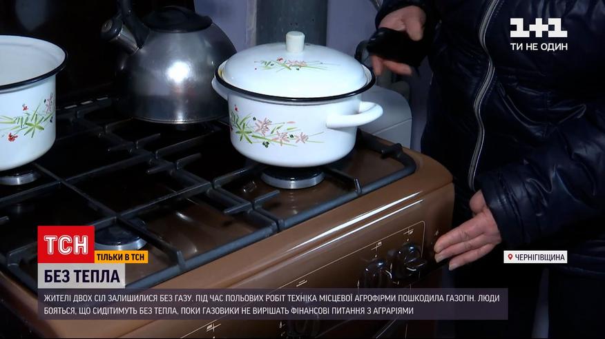 Майже тиждень в холоді - жителі двох сіл на Чернігівщині залишилися без опалення. Газогін, по якому отримували блакитне паливо чотири сотні домогосподарств, пошкоджено технікою місцевої агрофірми. Газову трубу зачепили, коли підпушували дряпаком поле на глибині 35 сантиметрів.