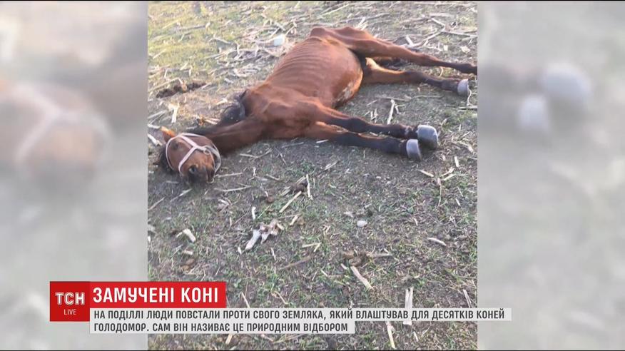 Обурені кажуть, що чоловік тримає зо два десятки коней і геть їх не годує. Зимують тварини, за словами активістів, не у стайні, а на вулиці, тож щороку під час морозів вимирають по кілька коней. ТСН вирушила на Поділля і поспілкувалася і із зоозахисниками, і з власником табуна.