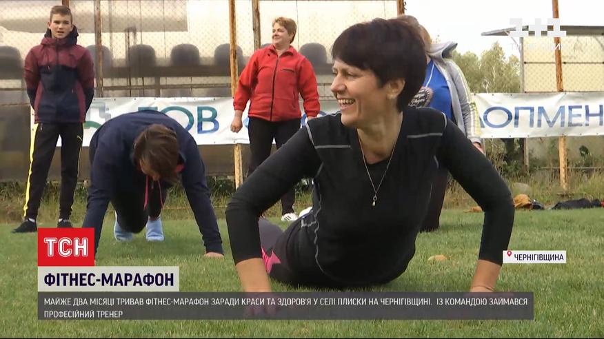 До фіналу дійшли не всі, але результати є. Жителі села Плиски, що у Чернігівській області, завершили фітнес-марафон. Півтора місяці двічі на тиждень вони просто неба - на очах ошелешених односельців - займалися спортом заради краси й здоров'я. І їм тепер є, чим похизуватися перед всією країною.