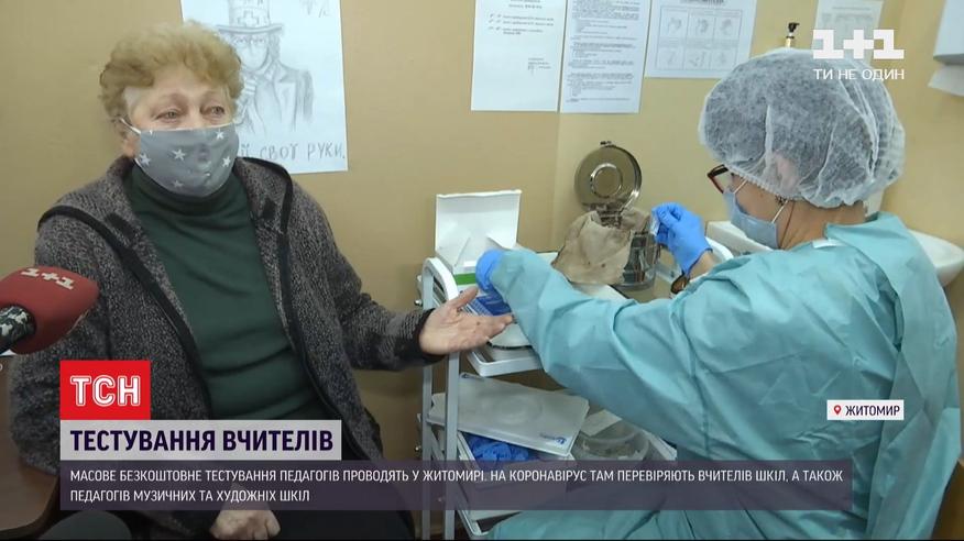 Масове тестування вчителів у Житомирі. Всіх педагогів міста безкоштовно перевірять на коронавірус. Протестують не тільки шкільних вчителів, а й викладачів музичних та художніх шкіл. Для цього використають чотири тисячі експрес-тестів, їх надали благодійники. Тест покаже, чи є вірус в організмі на даний момент та чи хворів вчитель раніше. Вже відомо, що за результатами тестування у деяких школах, 40 відсотків педагогів вже перехворіли. За словами чиновників, у тих випадках, коли вчителі переважно вже перехворіли і мають імунітет - вже з понеділка за парти зможуть повернутися учні старших класів, які нині навчаються дистанційно. Але рішення у кожній школі мають ухвалювати самостійно.