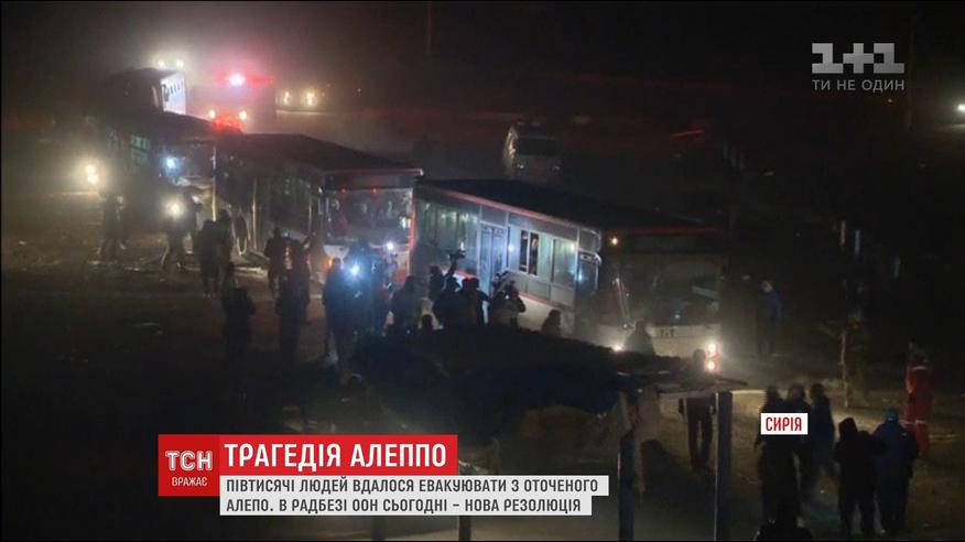Перша група мирних мешканців змогла виїхати з міста вночі. Кілька десятків автобусів вивезли також дві тисячі цивільних із довколишніх сіл. Людей селять у таборах для біженців. Сьогодні в Радбезі ООН мають голосувати за резолюцію про евакуацію мирних сирійців.