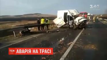 На трасі Київ-Чоп біля села Підбірці сталося потужне зіткнення. Попередньо, водій автобуса виїхав на зустрічну смугу і врізався у вантажівку. Від удару фура пробила відбійник та вилетіла на узбіччя, кабіна мікроавтобуса перетворилася на купу брухту.